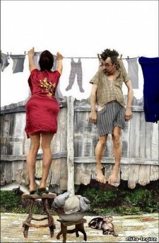 И как даст теще, что та отлетела в угол.